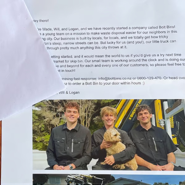 Hand-delivering letters to your potential customers is an example of this, and as a result, the lads at Bolt Bins now have my business when I need a skip.