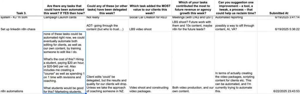 This weekly audit allows our business to get closer to this outcome. Great companies get everyone rowing in the same direction, faster and more efficiently week on week.